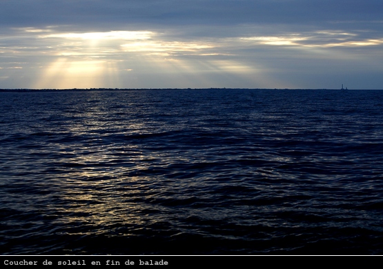 Une balade toutefois sympathique avec un passage rapide entre les deux îles St Marcouf, quelques maquereaux pêchés pour le dîner et un joli coucher de soleil à notre retour sur Carentan.