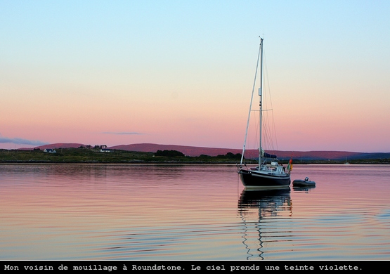 A partir de ce moment, curieusement le vent se calme. Je prends l’annexe et m’en vais flaner tranquillement dans Roundstone. De retour au bateau je m’occupe du courrier et de cet article. Le vent est toujours calme, mon éolienne ne tourne même plus, mais je sais que ça ne va pas durer.