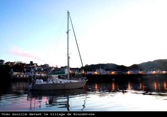 Heureusement cette journée se termine bien. Roundstone est un village beaucoup plus agréable que je ne l’imaginais. Mon tour d’honneur est un peu long car je sonde un peu partout pour trouver un endroit profond. Je finis par mettre l’ancre juste en face.