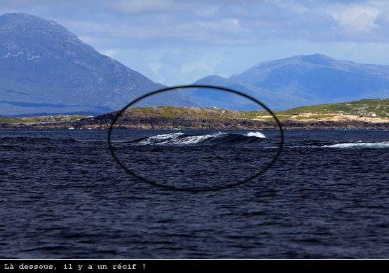Oléo passe très près la roche à tribord, mon coeur s’emballe, je me vois déjà échoué dans cette maudite passe, je me concentre pour maintenir Oléo un peu plus à babord mais pas trop afin d’éviter de m’encastrer sur le récif à fleur d’eau.