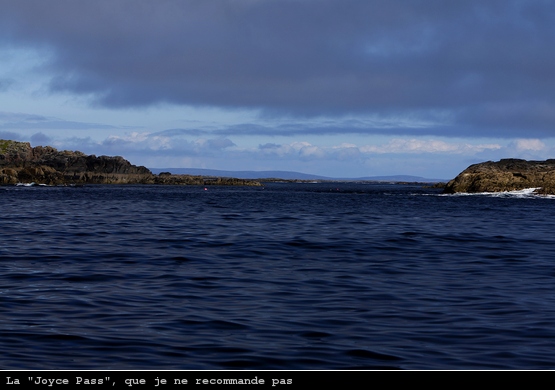 Ma grande hésitation concerne la « Joyce pass ». Il s’agit d’un passage étroit qui évite de contourner « Slyne Head » et me ferait gagner deux ou trois heures. Je me rue sur toute la documentation que je possède sur cette passe, qui est par ailleurs largement documentée dans l’ouvrage « Sailing Directions ».