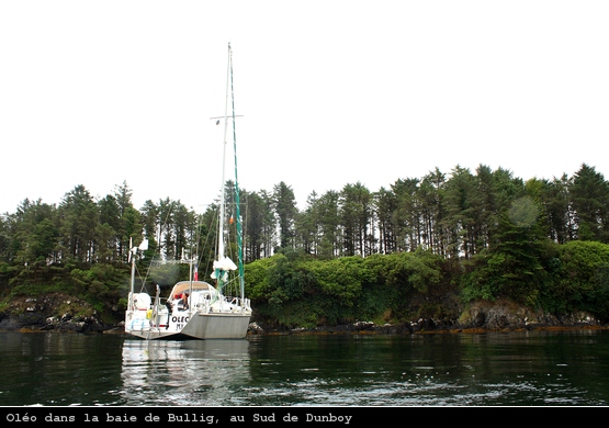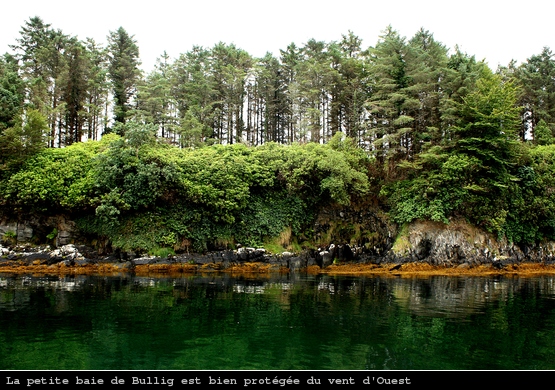 Petit coup de moteur jusqu’à la passe Ouest de Bear Island sinon on en aurait pour la journée. Nous mouillons dans la baie de Bullig, une petite anse bien protégée au Sud de Dunboy où je nage jusqu’à la rive pour prendre quelques photos.