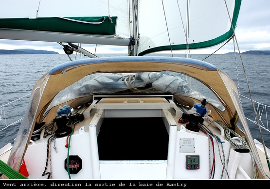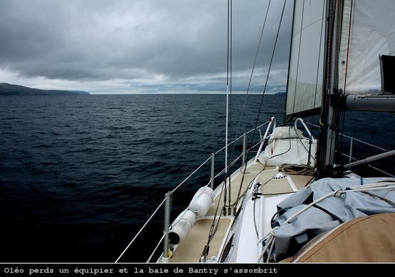 Nous sommes à Crookhaven et nous devons partir. Compte tenu des courants et de la météo, il faut voyager de nuit. A deux heures du matin je détache Oléo de son coffre et hisse les voiles en direction la baie de Bantry.