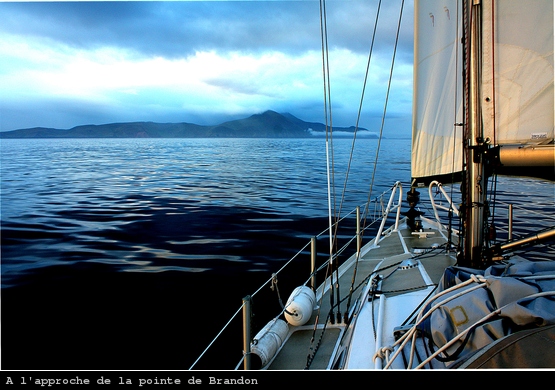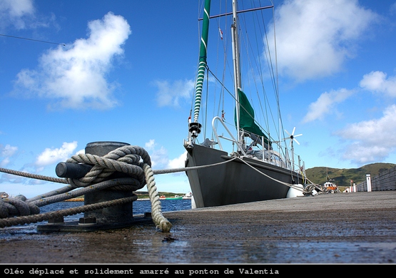 Le temps se dégrade encore. Un souffle de Sud-Est m’empêche d’avancer vers Valentia avec un début de pluie. La météo prévoyant un vent de 10 à 15 noeuds, j’avais retiré la trinquette que je ré-endraille à toute vitesse. La pression tombe et j’avance péniblement vers le sud en zig-zag.