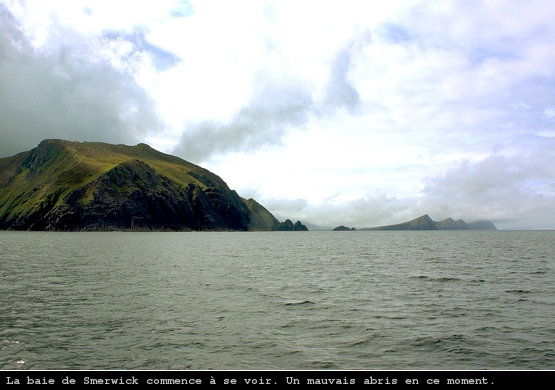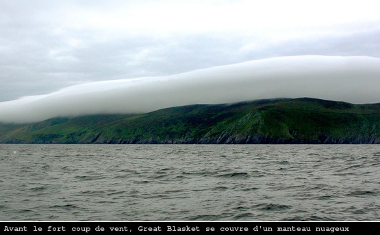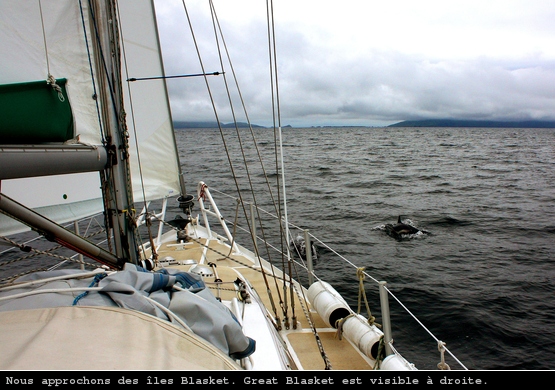 Le lendemain, mauvaise nouvelle : vent de Sud. Je tire des bords interminables jusqu’aux Blaskets où mes compagnons les dauphins m’accompagnent. Je suis dans le sound, entre les îles, à l’extrème Sud-Ouest de l’Irlande quand le vent commence à se faire menaçant.