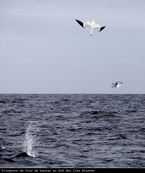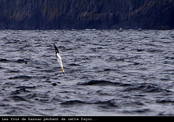 A la sortie des Blaskets j’assiste à un spectacle intéressant de la part des fous de bassan du coin. Je ne sais pas ce qui se passe dans la mer, mais tel des fusées ces oiseaux se précipitent dans l’eau tous ensemble, au même moment et au même endroit. Chaque salve est accompagnée d’un concerto de « splash », comme un ébouli qui termine dans la mer. Lorsque j’ai correctement réglé mon appareil photo pour prendre une nouvelle salve… tout s’arrête. Pas de bol.