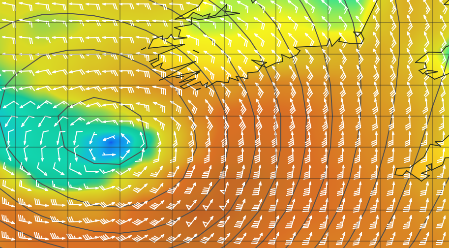 Deux jours après tout va bien. Les dépressions passent rarement au Sud de l’Irlande mais aujourd’hui c’est effectivement le cas. Comme on peut le voir sur l’image ci-dessous, ce n’est pas encore le moment de revenir en France, j’attends donc patiemment qu’une fenêtre météo plus favorable s’ouvre.